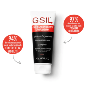- Grâce à son mélange de Silicium organique, d'Harpagophytum et d'huiles essentielles, le GSIL Gel Surconcentré Articulaire AQUASILICE et son effet chauffant ressenti pendant 5h vous apporteront un meilleur confort articulaire !