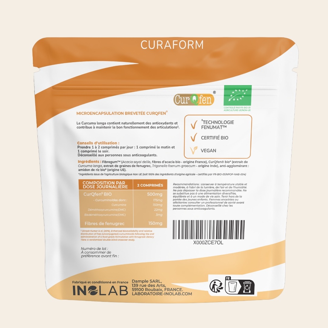 ✅ Extrait breveté CurQfen®, associant curcuminoïdes et fibres de fenugrec bio.