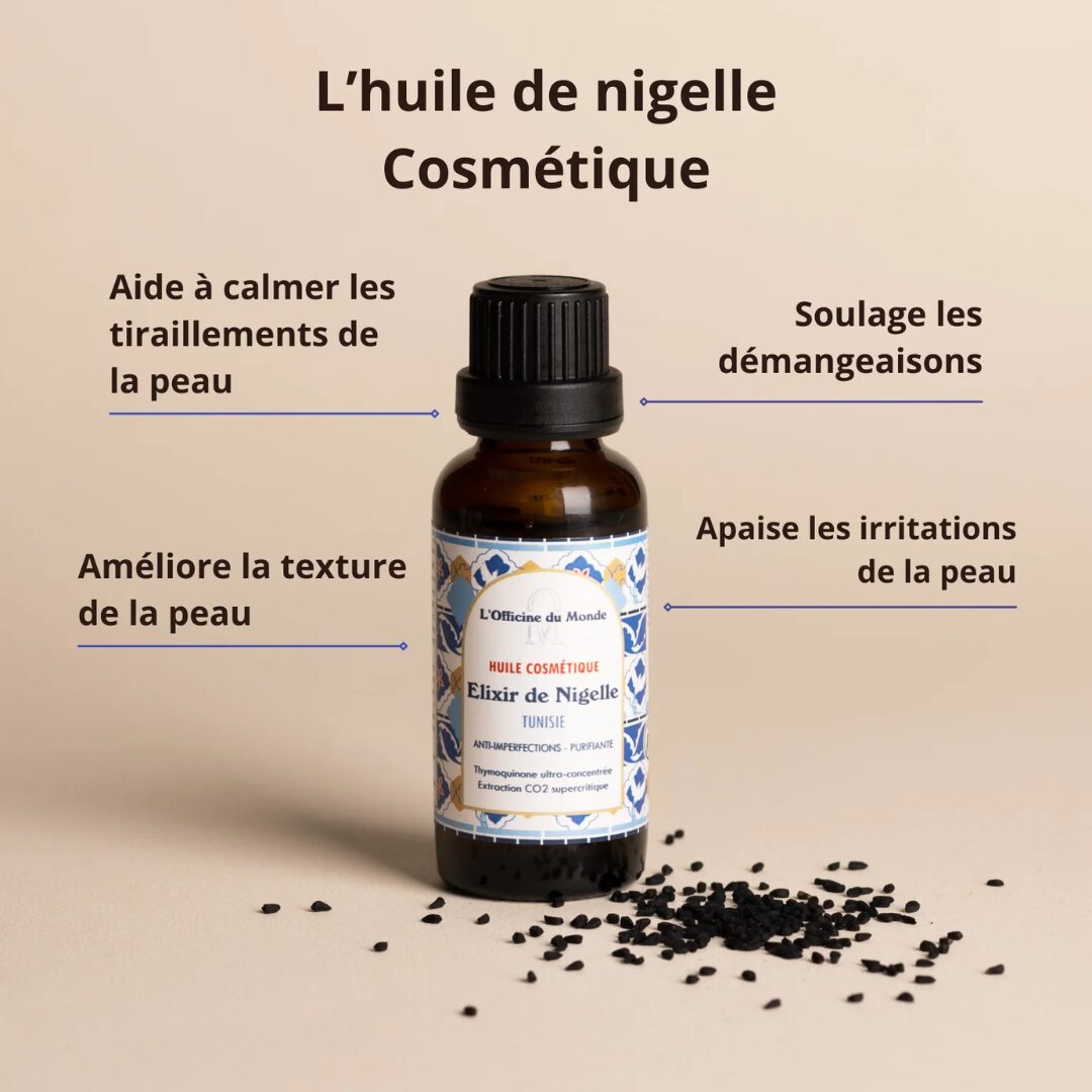 🌿 Élixir de Nigelle Cosmétique Titrée de Tunisie – Huile pure & concentrée