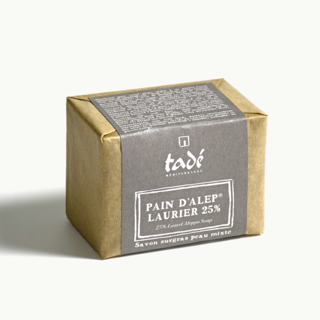 Le Pain d’Alep 25 % Tadé® est un savon authentique et artisanal, fabriqué selon une méthode traditionnelle transmise de génération en génération par les maîtres savonniers d’Alep. Cuit au chaudron en discontinu, séché pendant plusieurs mois, puis estampillé à la main, il est reconnu pour sa qualité exceptionnelle et son efficacité naturelle.