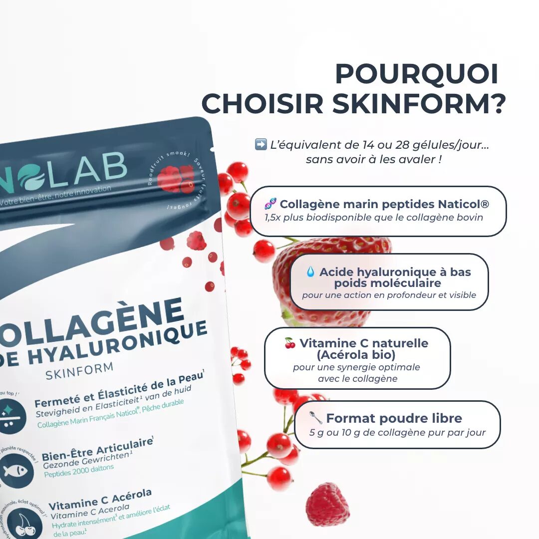 SKINFORM est un complexe complet alliant peptides de collagĂšne marin NaticolÂź, acide hyaluronique et vitamine C, formulĂ© pour soutenir la beautĂ© de la peau et le bien-ĂȘtre articulaire.